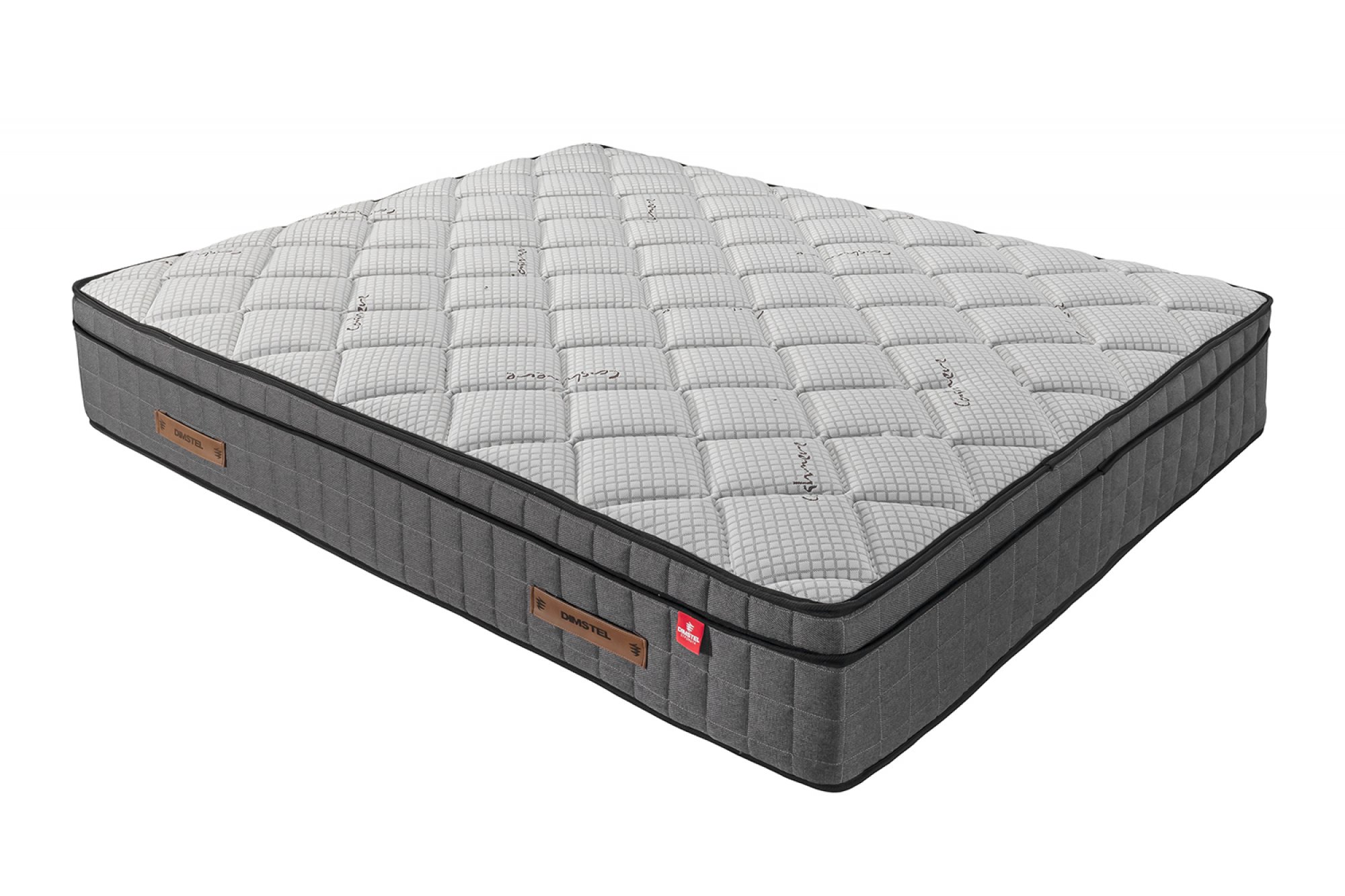 It features a luxurious knitted cashmere fabric, layers of high-quality foam materials, and 18 cm high individually pocketed springs, reinforced with a steel perimeter support frame.