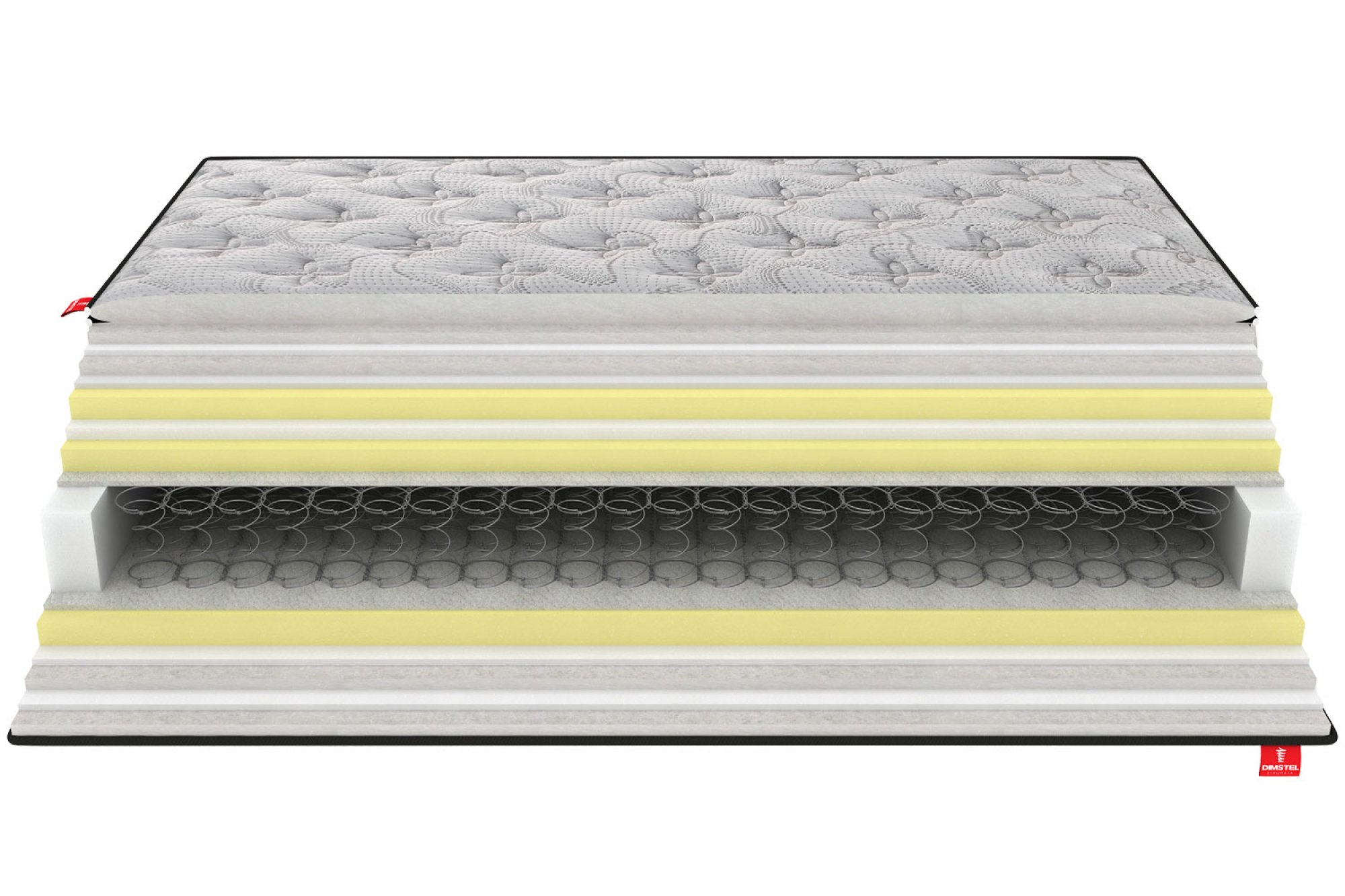 Τέλος, τα ελατήρια Bonnell ελβετικής τεχνολογίας με 3 ζώνες στήριξης αποτελούν μια μοναδική καινοτομία που παράγει η DIMSTEL. Αυτή η τεχνολογία εξασφαλίζει ομοιόμορφη υποστήριξη σε όλη την επιφάνεια του στρώματος και βελτιώνει την ευθυγράμμιση του σώματος.